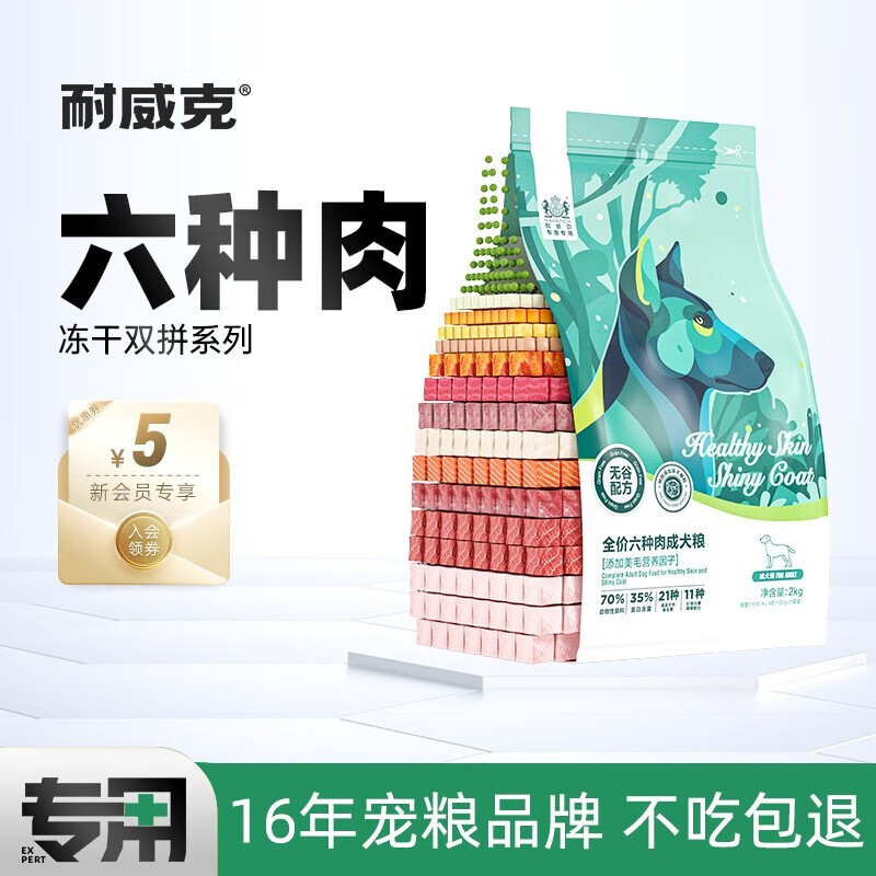 耐威克(NAVARCH)通用成犬幼犬奶糕狗粮 泰迪贵宾金毛柯基六种肉无谷冻干粮 【成犬2kg】无谷六种肉多种果蔬