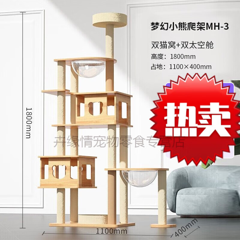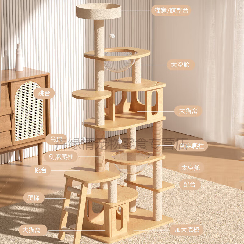 宠袋猫爬架猫窝猫树一体实木猫架子通天柱太空舱剑麻玩具猫咪用品 梦幻MH3