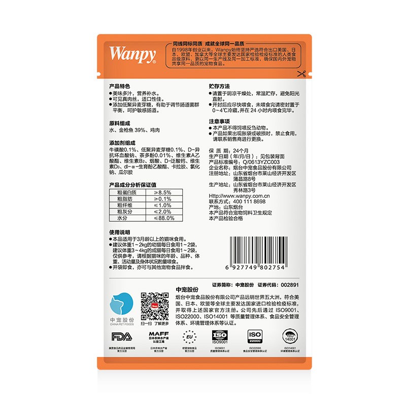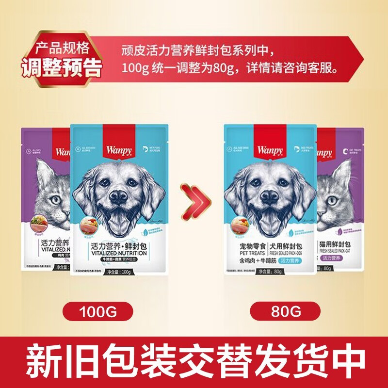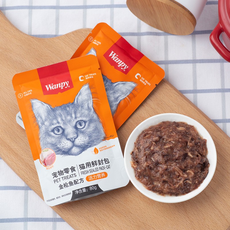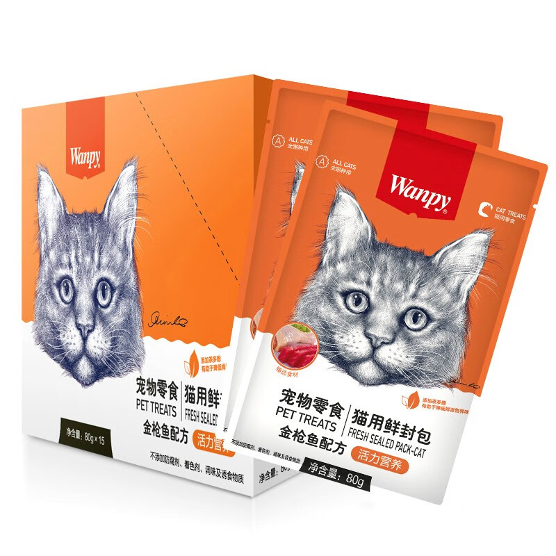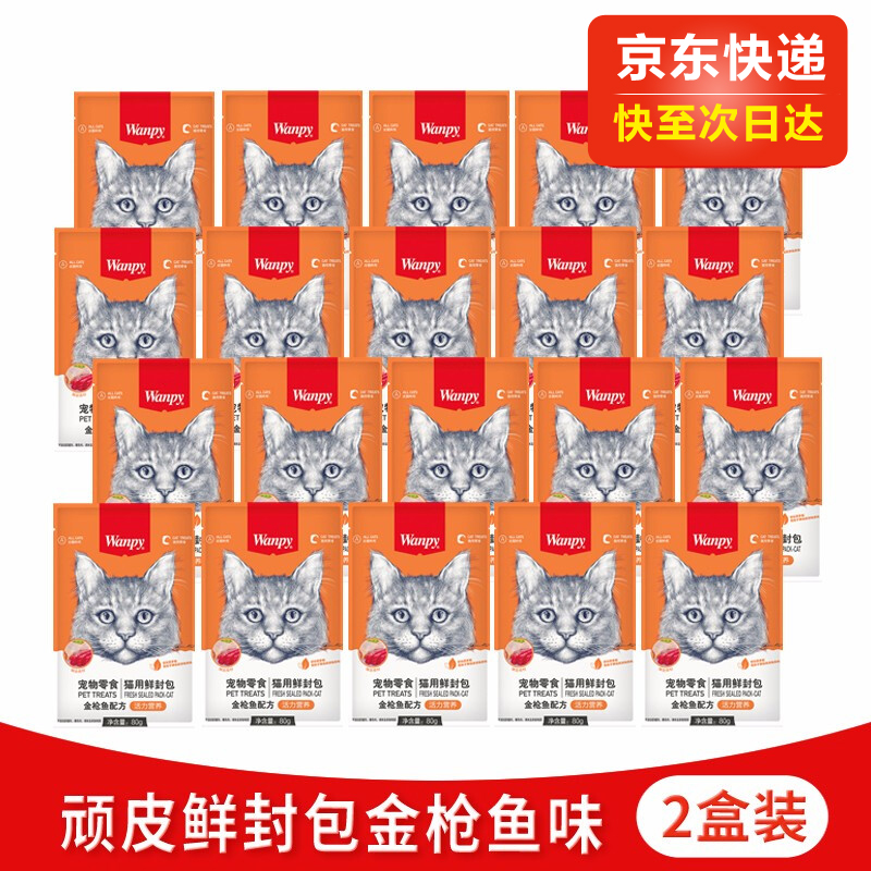 顽皮(Wanpy)猫咪鲜封包 宠物猫粮肉粒包 猫湿粮猫罐头整盒装 金枪鱼味80g*10袋(2盒装)