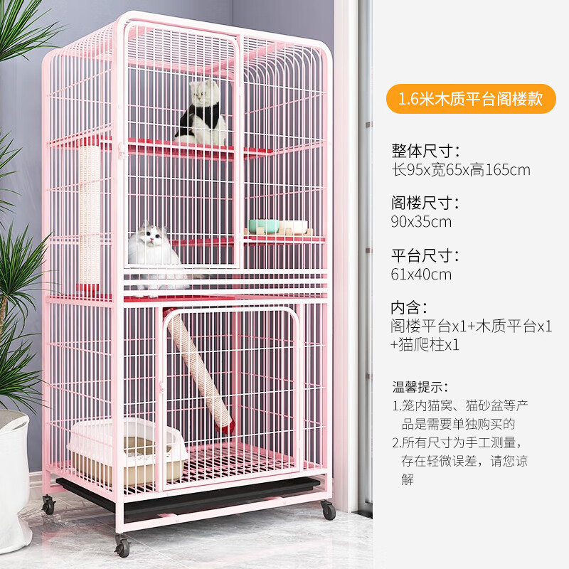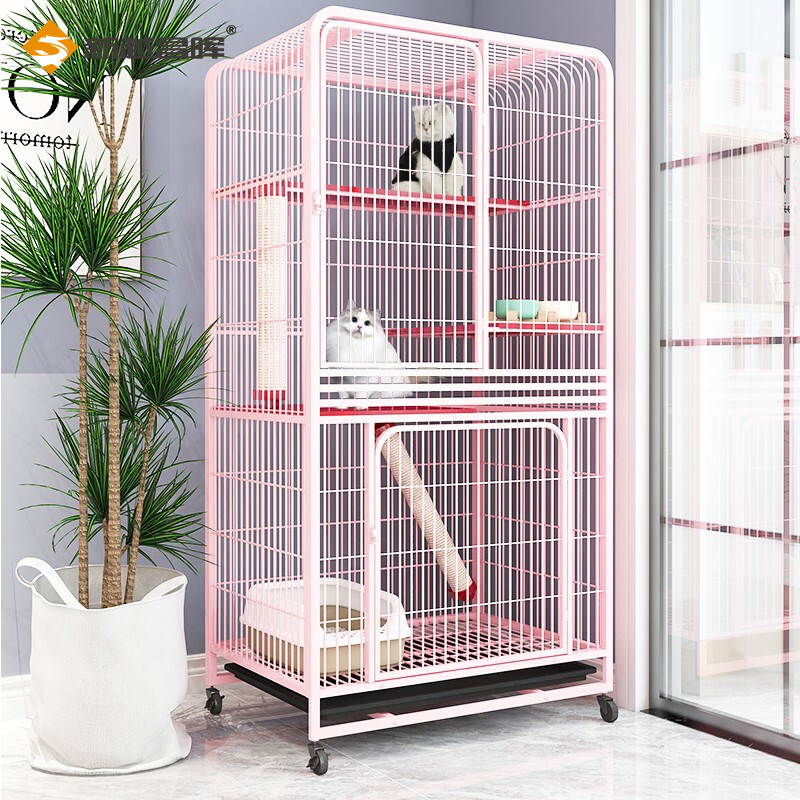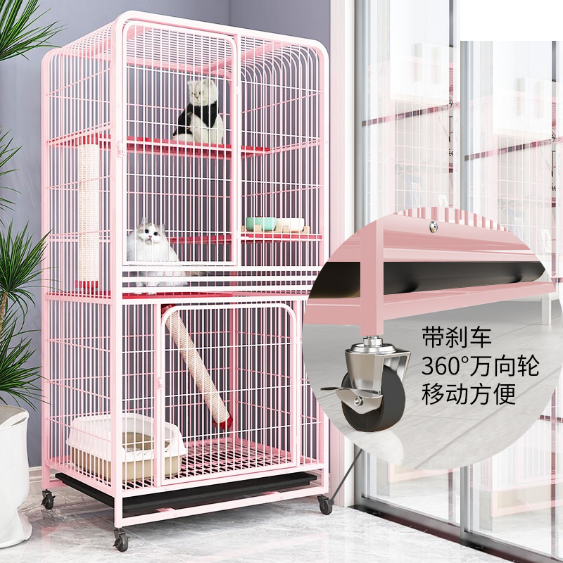 新越昌晖猫笼子猫别墅四层猫柜 宠物猫咪房子猫窝猫屋 幼猫通用猫舍95*65*165cm 粉色XY-ML07F