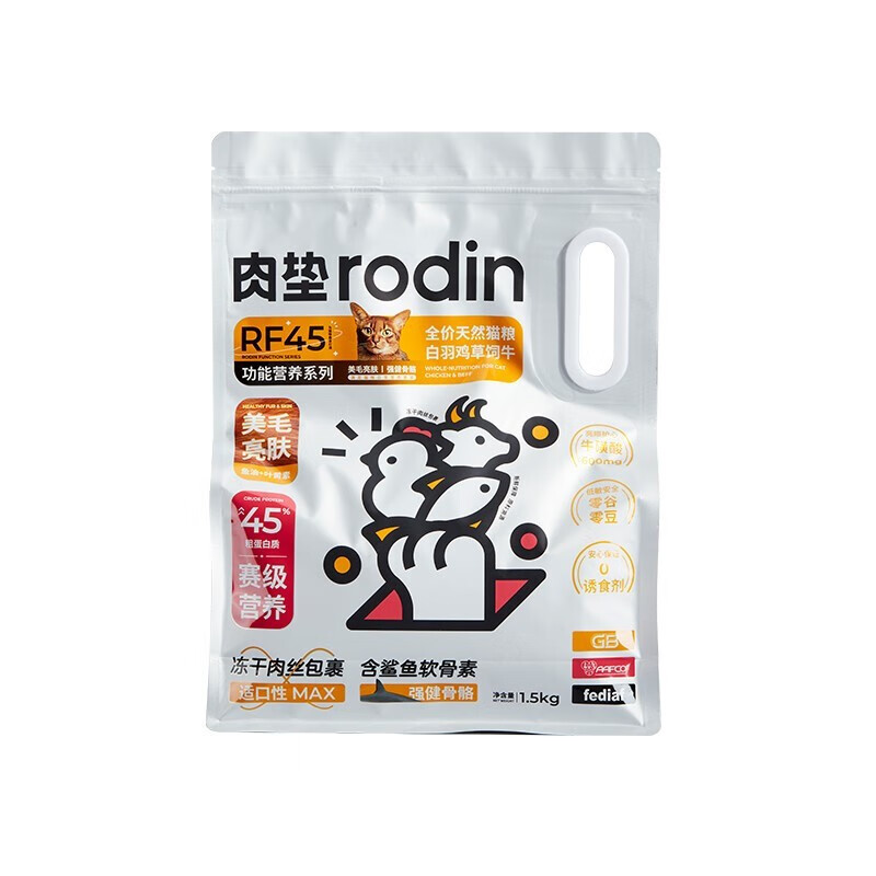 肉垫 猫粮 成猫幼猫鲜肉猫粮全价功能营养主粮无谷低敏防软便增肥干粮 【美毛亮肤】白羽鸡配方 1.5kg*1袋
