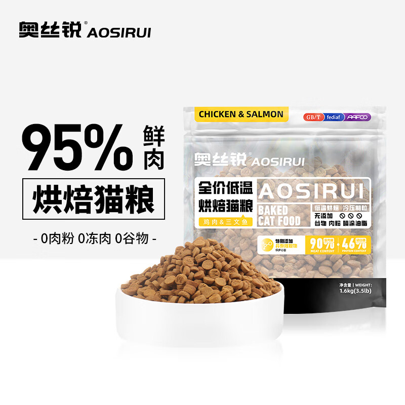 奥丝锐低温烘焙猫粮成猫幼猫鸡肉味三文鱼天然无谷全价猫粮1.6kg