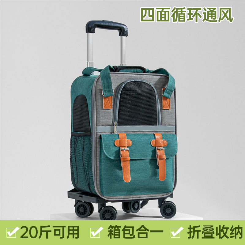 邦可臣 猫包大号拉杆双肩透气夏宠物狗狗外出包猫包便携大容量背包猫咪 【拉杆款-墨绿】一包三用 超大号(20斤之内猫狗) 羊羔绒睡垫