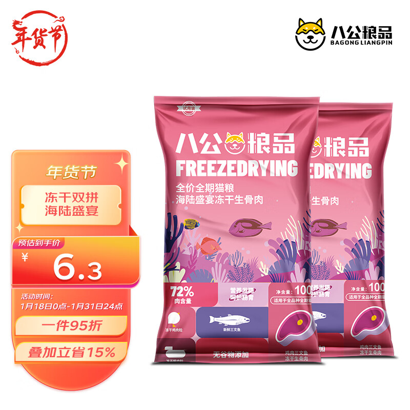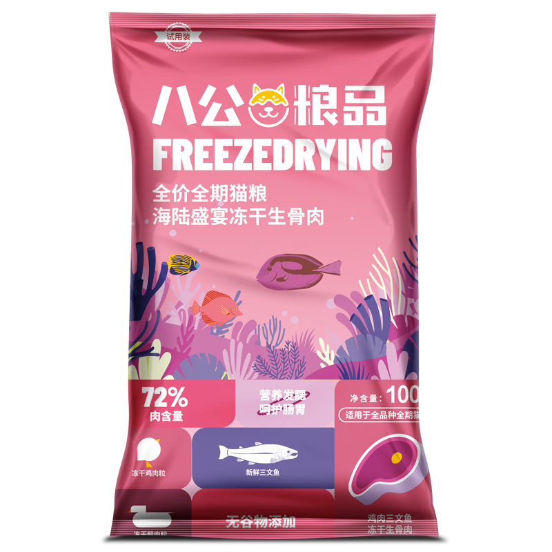 八公粮品 无谷成猫猫粮全价英短咖啡猫粮益生菌低敏猫粮通用干粮 冻干猫粮试吃装100g*2袋