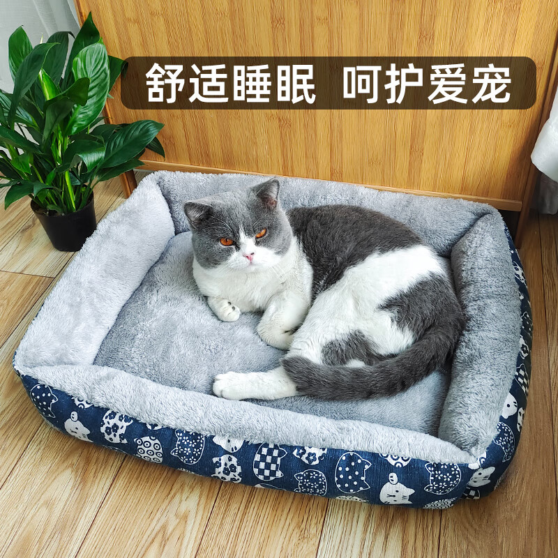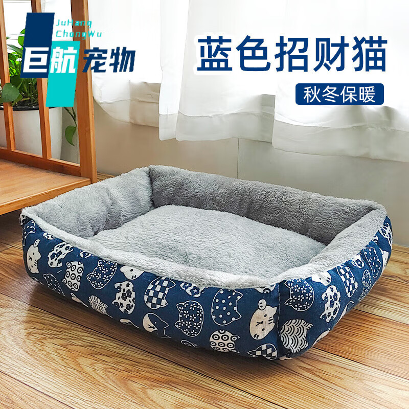 凛东狗窝猫窝冬季保暖宠物垫子泰迪中小型犬猫床四季通用猫狗用品大全 蓝色猫 北极绒 45*35cm(建议5斤内)
