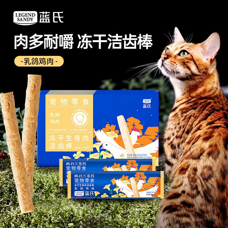 LEGENDSANDY蓝氏猫咪零食冻干生骨肉成猫洁齿棒 磨牙营养训练奖励猫零食 乳鸽鸡肉味 30g