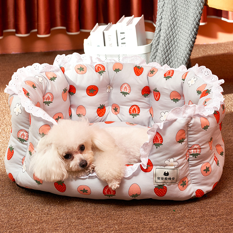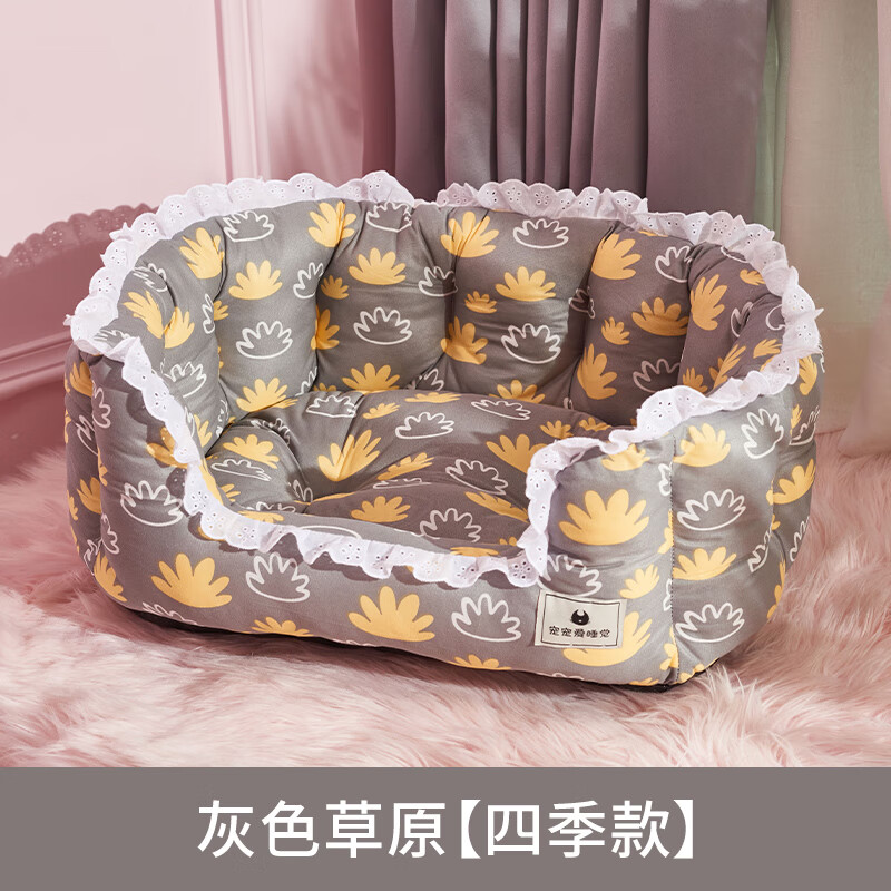 笼趣狗窝夏天凉窝四季通用小型犬泰迪狗狗床沙发非可拆洗猫窝宠物用品 灰色草原四季款 中号-10斤左右犬猫小型犬过渡使