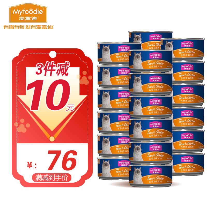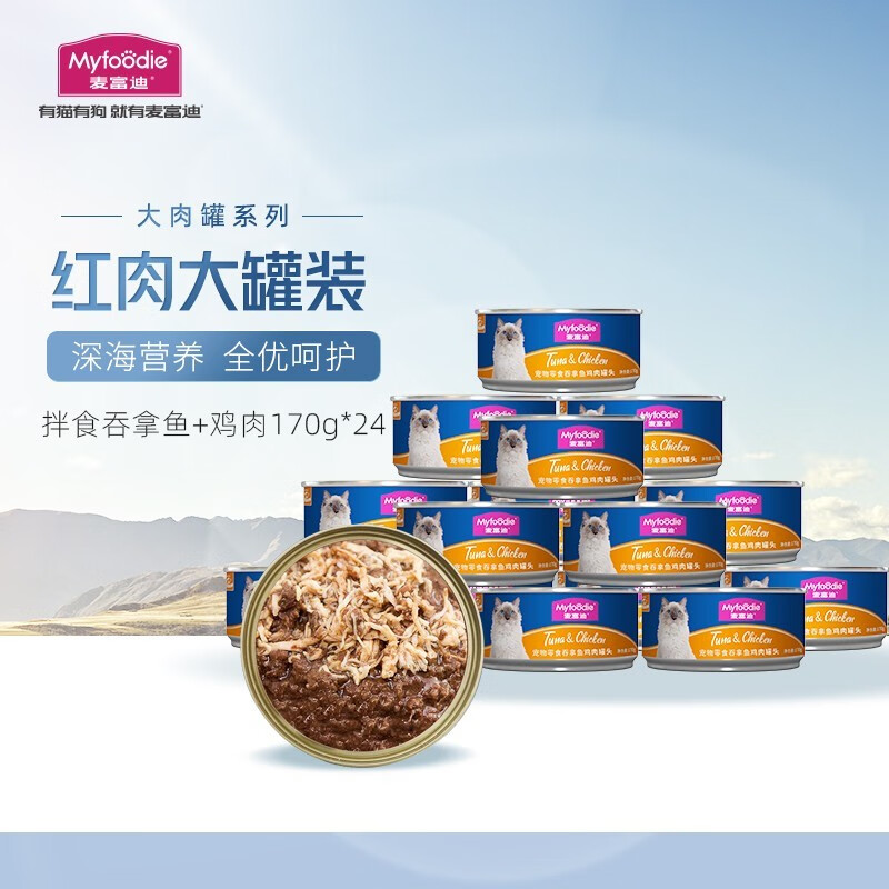 麦富迪猫罐头 猫粮猫湿粮肉粒包 鱼肉水煮高肉大罐头170g每罐 猫罐头(吞拿鱼 鸡肉)170g*24罐