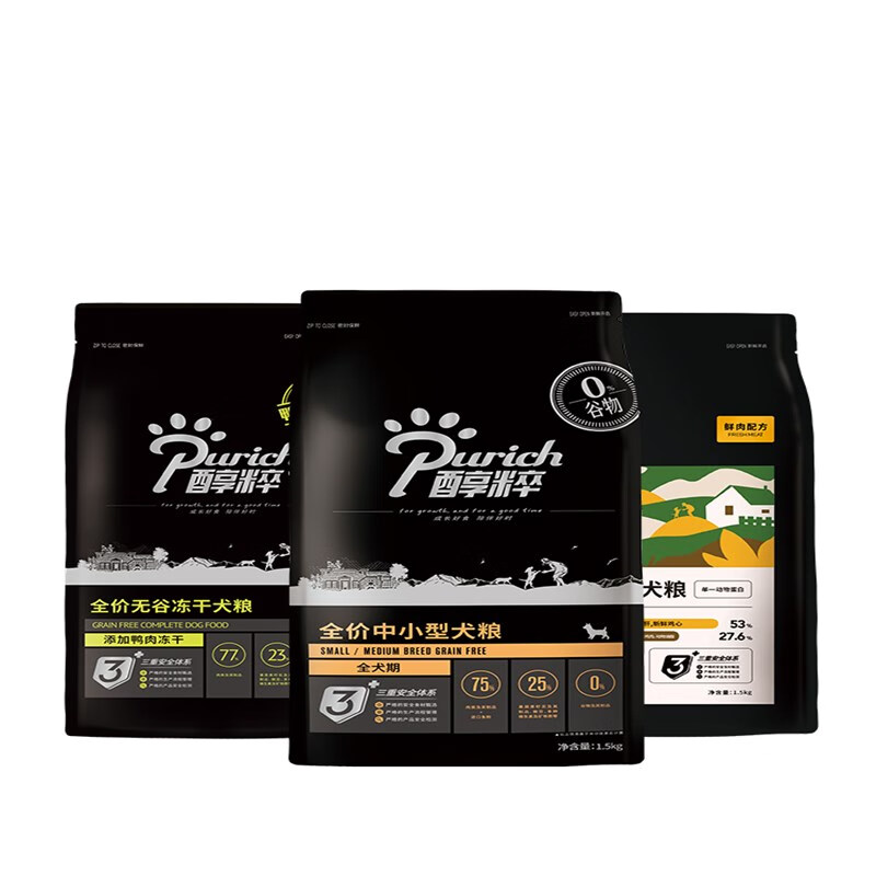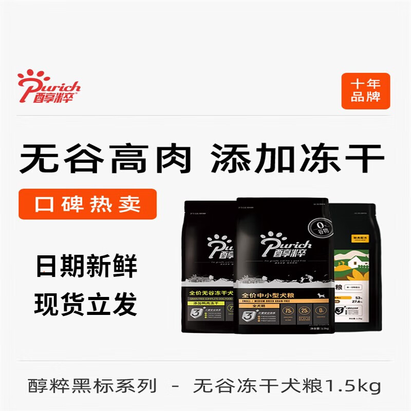 醇粹(Purich)黑标全价冻干成犬幼犬狗粮纯粹小型犬狗粮犬粮 鸡肉配方-添加鸡肉冻干 1.5kg/包