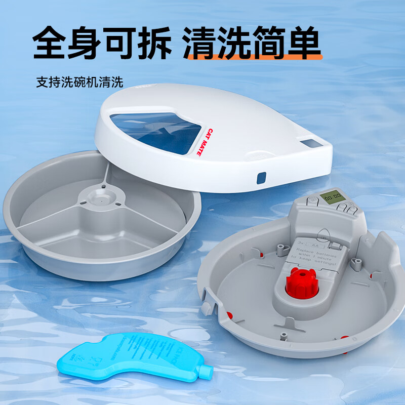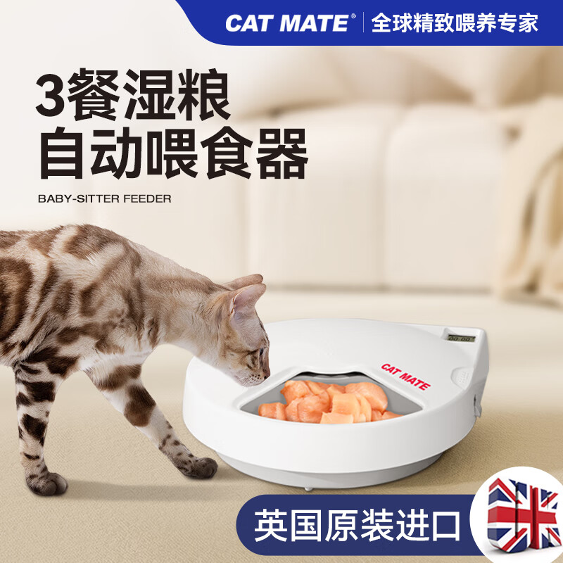 Catmate宠物自动喂食器366CN数字定时器版 猫咪狗狗干粮湿粮鲜粮罐头饭盒 蓝冰保鲜 适用3餐 英国进口