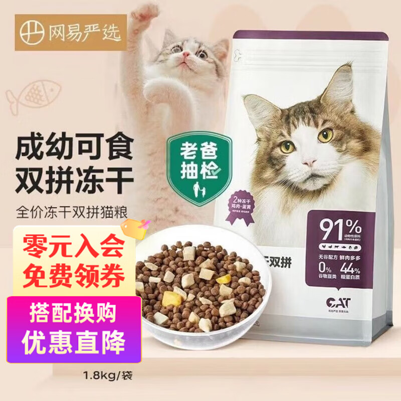 网易严选全价全期冻干双拼猫粮高蛋白增肥发腮 成猫幼猫天然无谷宠物主食 冻干双拼猫粮 5.4kg