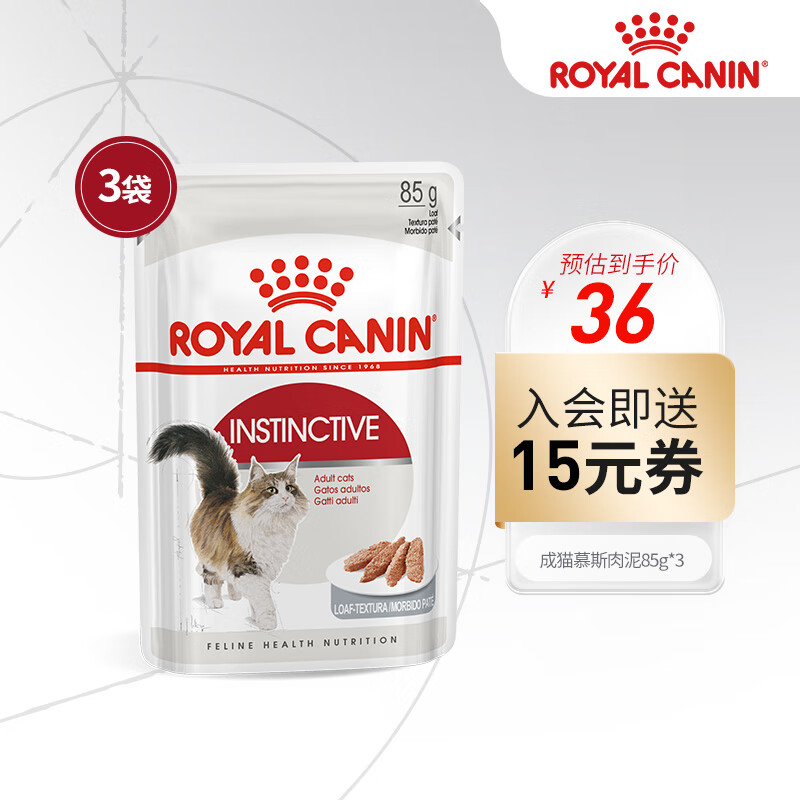 皇家猫粮(Royal Canin)欧洲进口猫罐头猫零食主食罐头猫粮奶糕罐头 成猫慕斯肉泥85g*3袋
