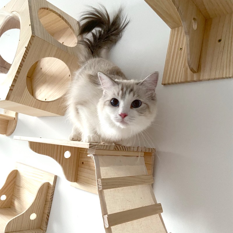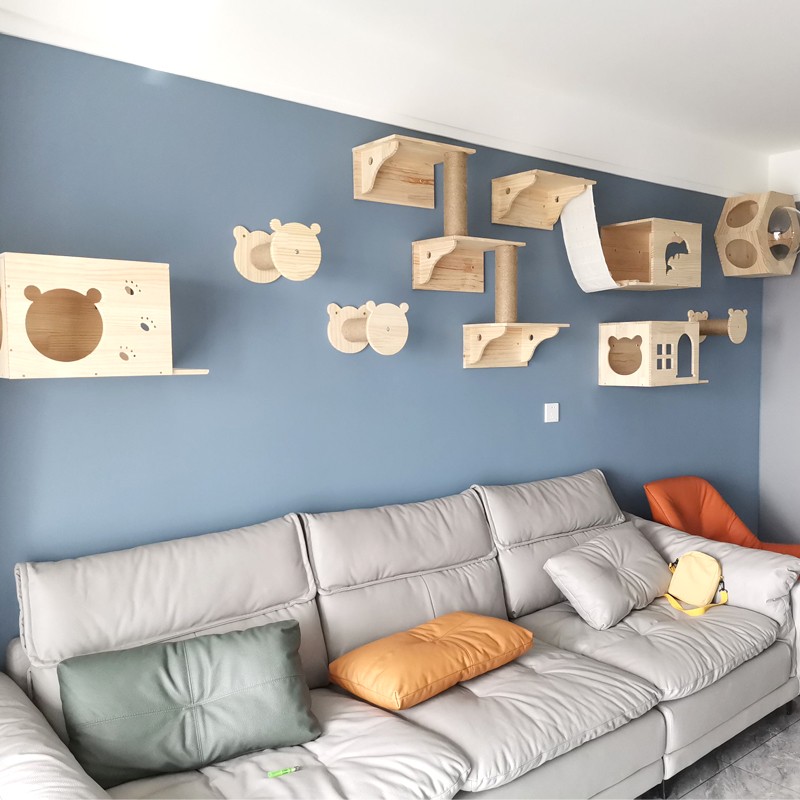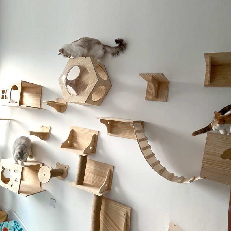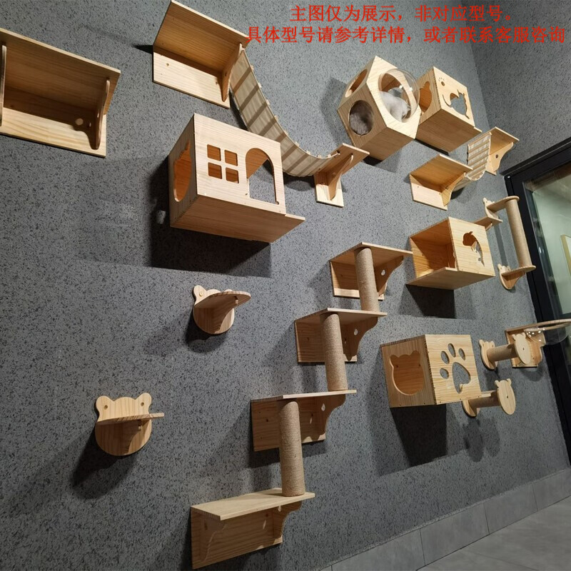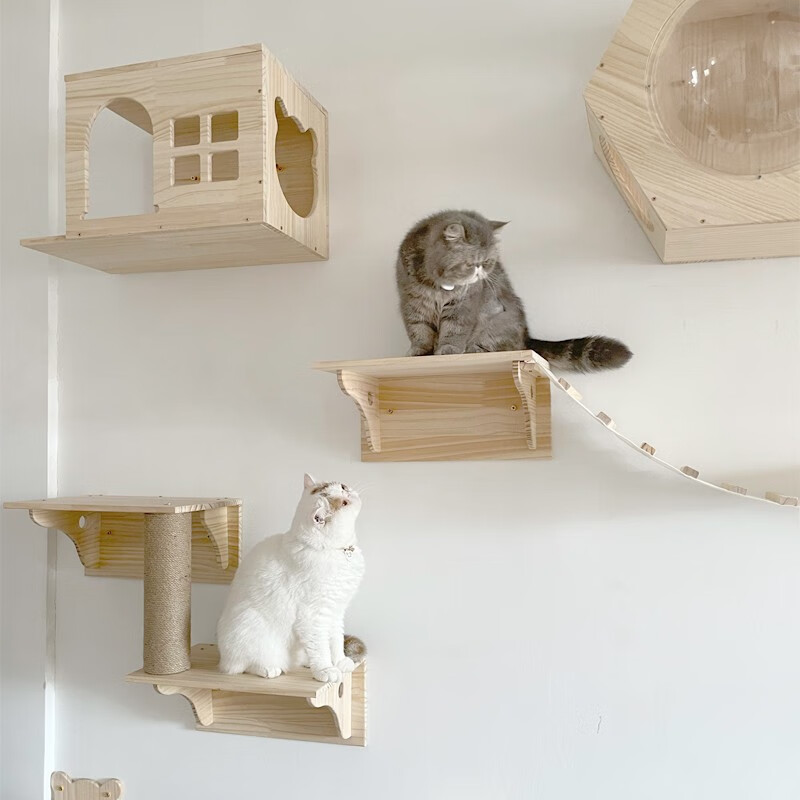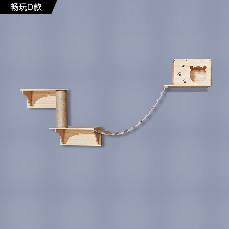 猫爬架实木猫窝壁挂式树墙猫跳台抓柱板太空舱跳台软梯吊桥剑麻猫玩具磨爪 实木畅玩D
