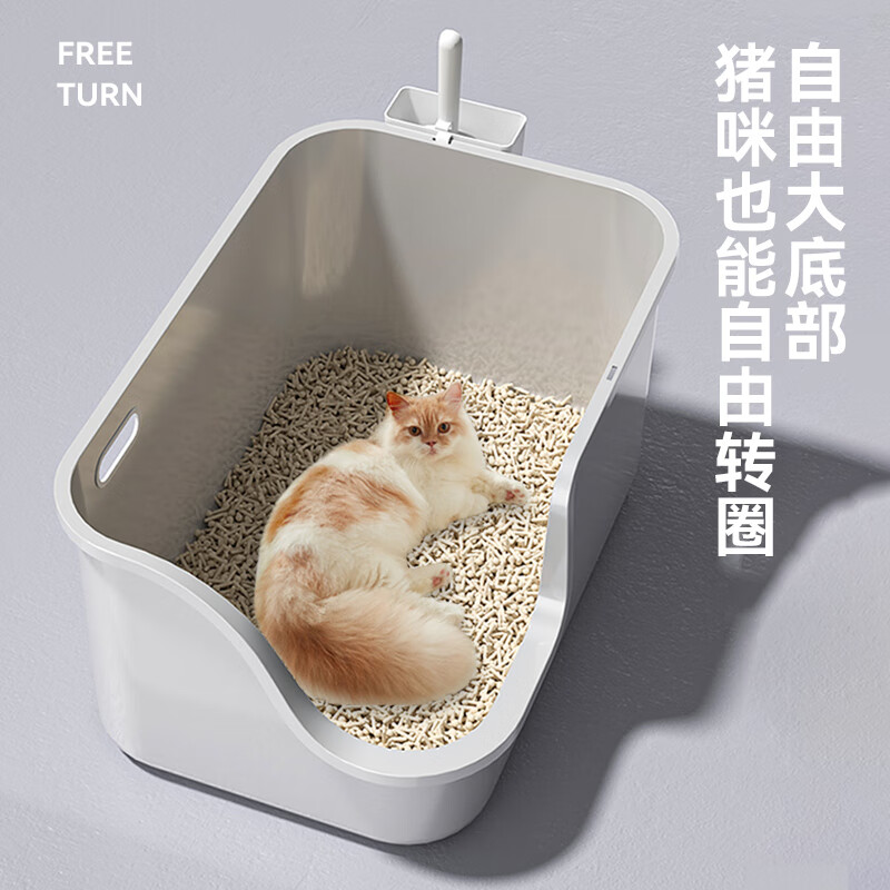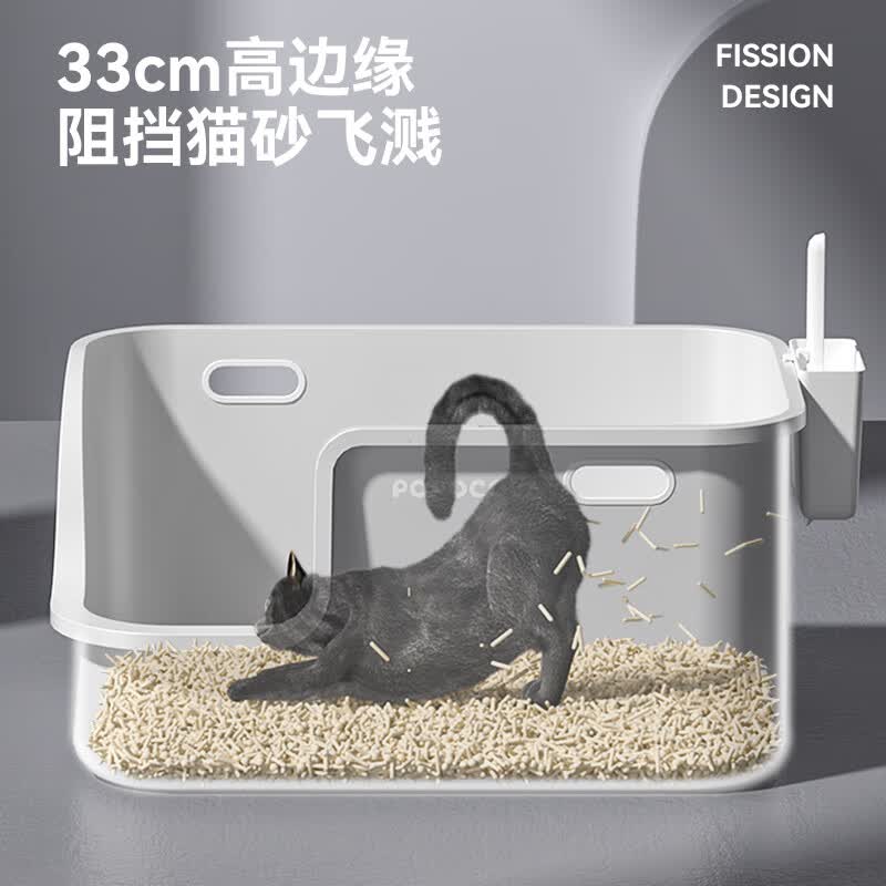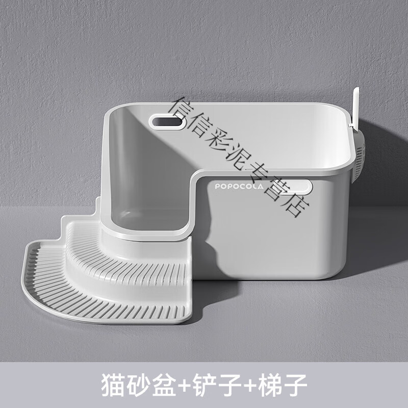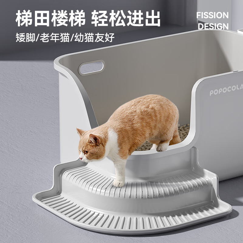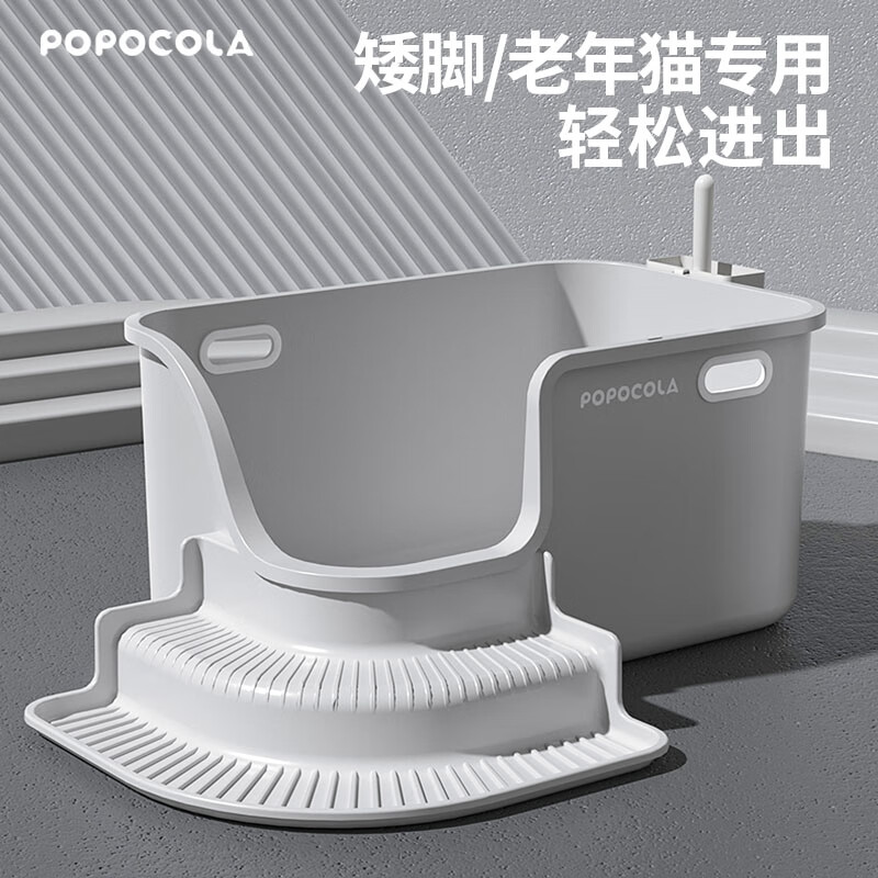 POPOCOLA猫砂盆矮脚猫超大号全开放巨大特大号防外溅短腿猫厕所老年猫 猫砂盆 猫砂铲 控砂梯