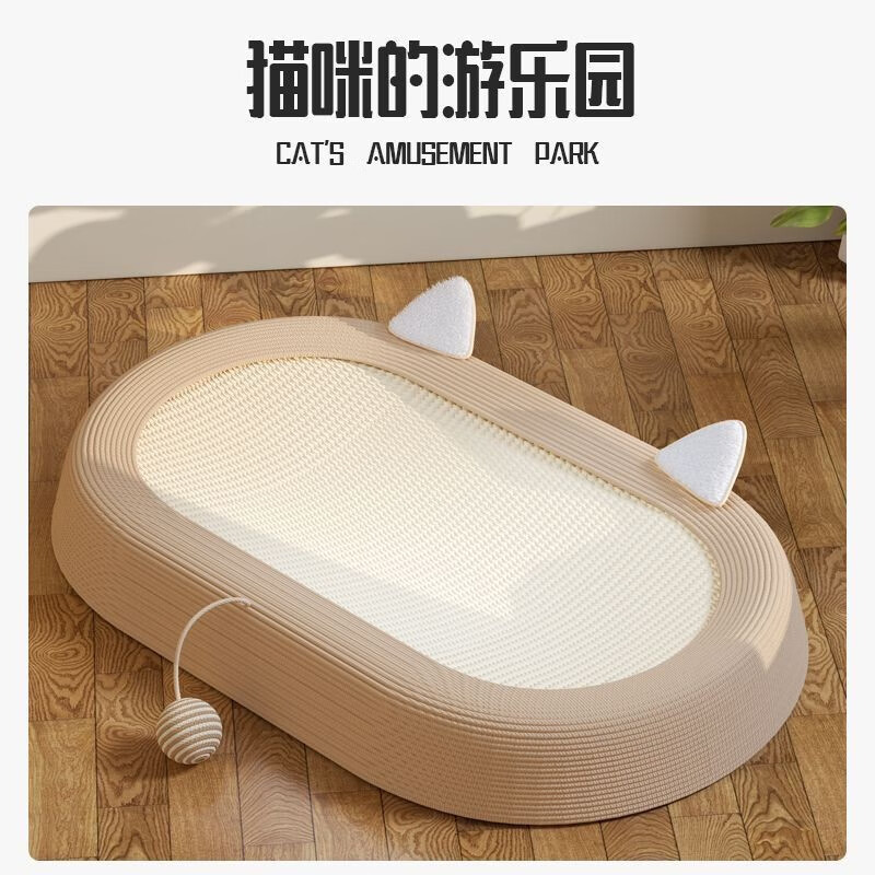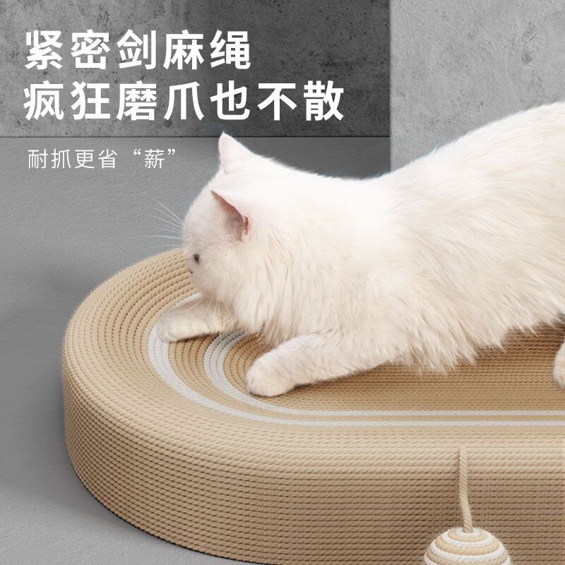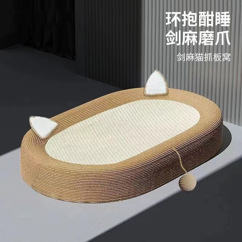 华元宠具(hoopet)剑麻猫抓板耐磨不掉屑耐抓猫窝一体猫爪盘盆椭圆形大号猫咪磨爪全麻猫玩具逗猫球 全剑麻大尺寸猫抓板(猫耳款)