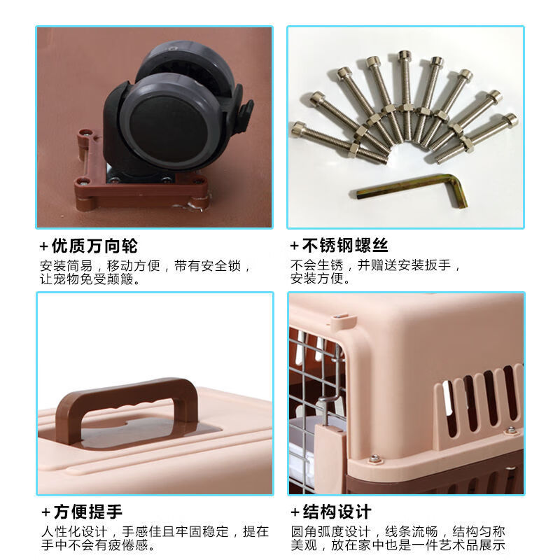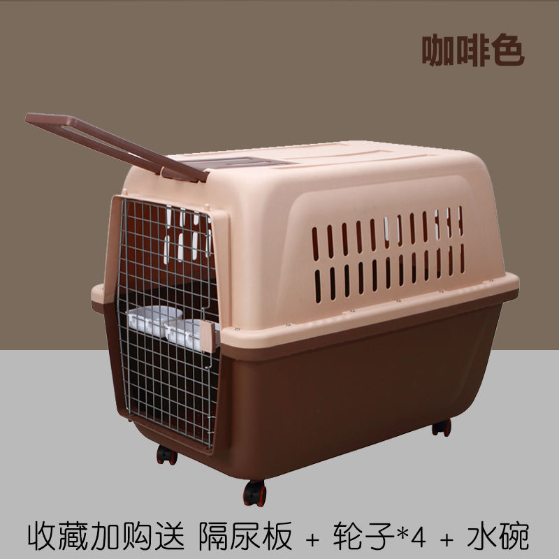 大号国航宠物航空箱猫笼狗笼外出便携托运中大型犬拉杆带轮 深咖色大号箱 大号箱81*57*68适合70斤以内