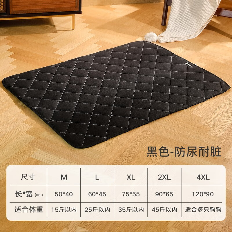 KimPets狗狗垫子四季通用睡垫宠物地垫睡觉用的耐咬猫垫子小狗笼毛毯子 黑色(耐脏防水- 耐撕咬) XL-大型(长75cm宽55cm)