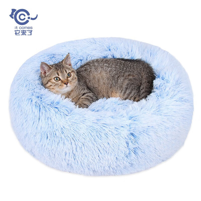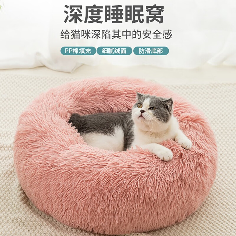 它来了 猫窝冬季保暖猫咪床狗狗窝深度睡眠猫垫子长毛绒猫屋幼猫宠物用品 粉色 4斤内猫咪适用【直径40CM】