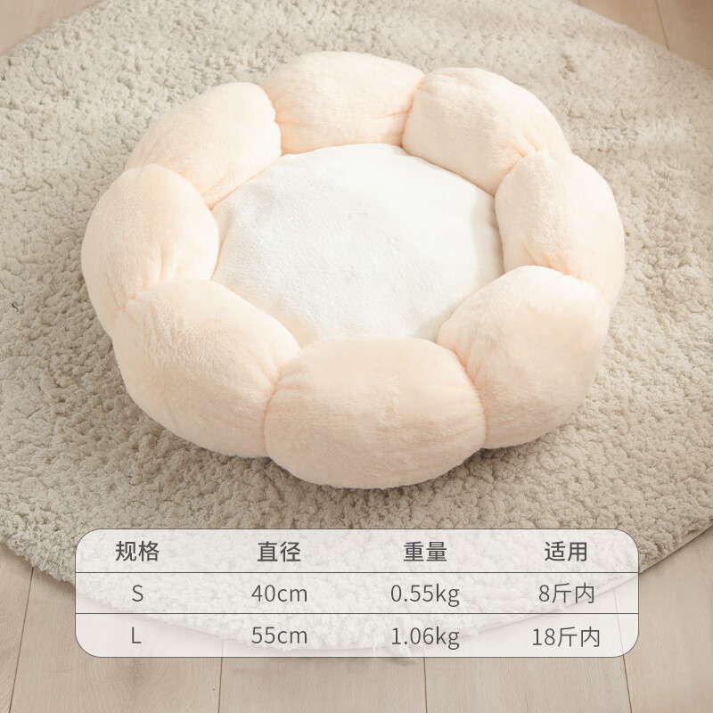 芭贝乐猫窝冬季保暖狗窝网红花朵蛋挞狗垫子冬季宠物猫咪床狗狗屋用品 粉色小号(40*40*14cm)
