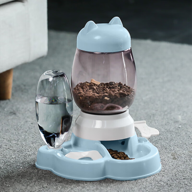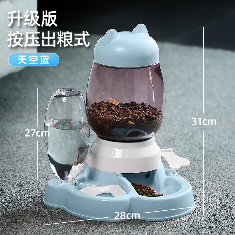 风宠猫咪自动喂食器狗粮机猫粮喂猫喂水一体狗狗饮水自助投食宠物用品 可按压款-蓝(可切换定量喂食/