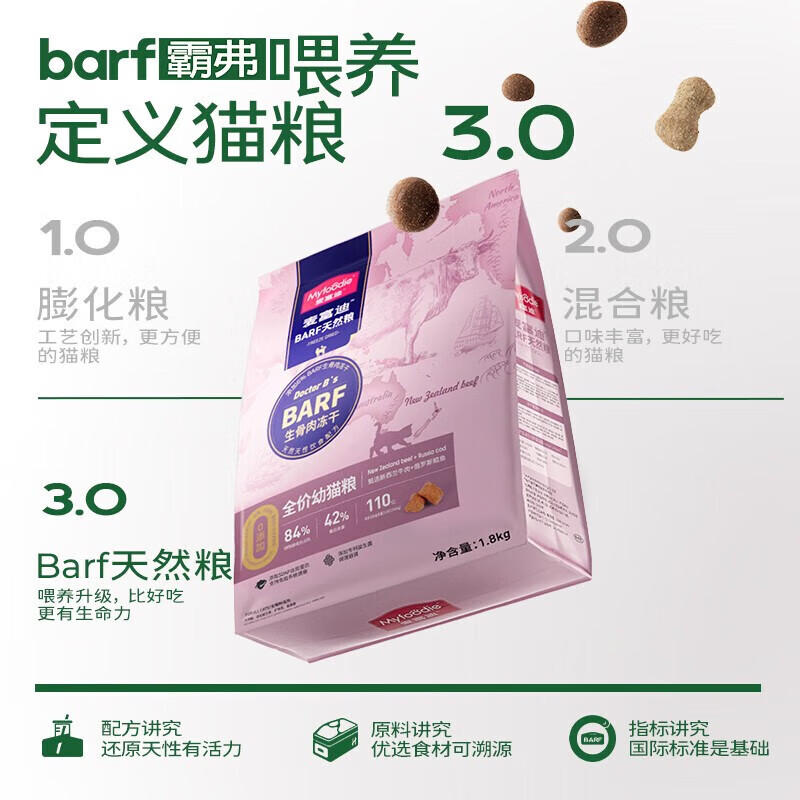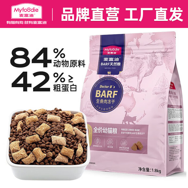 麦富迪 猫粮 barf生骨肉主食冻干双拼天然粮鲜肉营养无谷高肉高蛋白 幼猫粮1.8kg|牛肉 鳕鱼