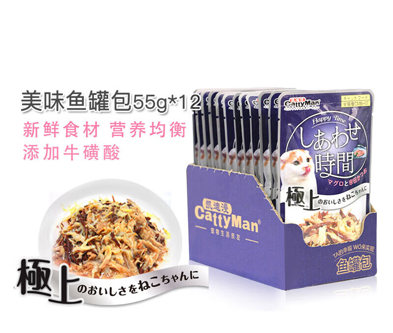 爱肯拿(ACANA)猫粮成猫鱼肉包营养增肥凯迪漫猫咪零食罐头55g*12包 金枪鱼 鸡胸肉 鲣鱼55g*12包 1盒