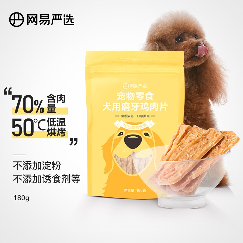 网易严选 70%肉含量醇香磨牙鸡肉片( 柯基柴犬泰迪博美贵宾犬零食 180g*1袋装