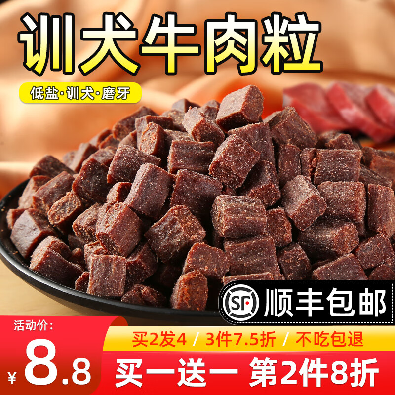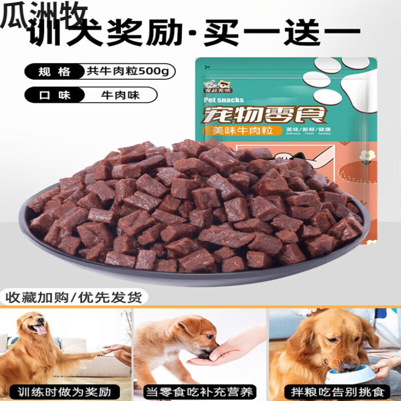 瓜洲牧狗狗零食牛肉粒幼犬小型犬泰迪金毛训狗训练奖励冻干宠物粮磨牙棒 新升级大份量原味2袋 250//g克重以选项为准