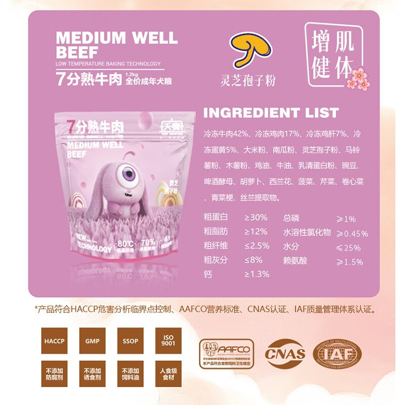 夭宴狗粮 低温烘焙鲜肉软粮牛肉7牛分熟鸭肉中小型犬成幼犬粮 牛肉 1.2kg(40g*30袋)