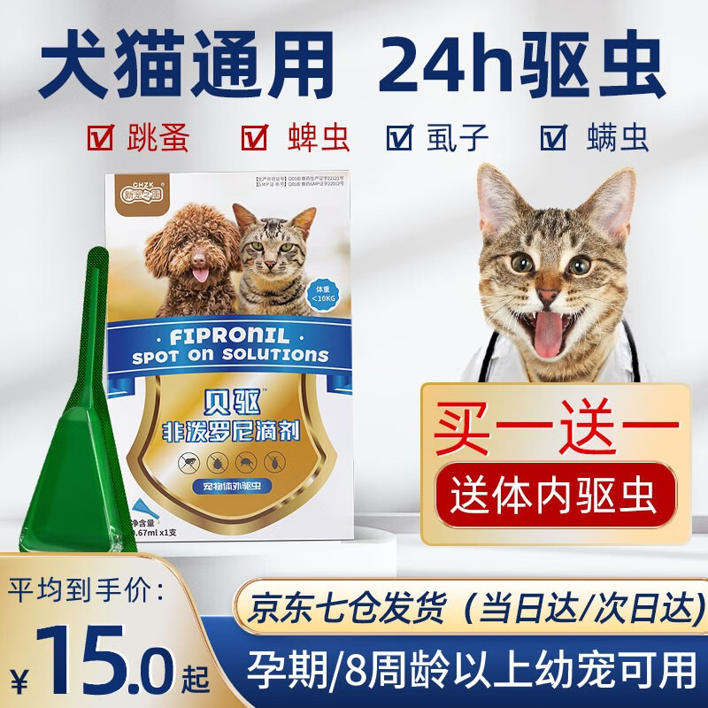 新宠之康猫咪体外驱虫 非泼罗尼滴剂 宠物猫咪驱虫药犬猫去跳蚤蜱虫驱虫药品 犬猫通用【单只装】-0.67ml
