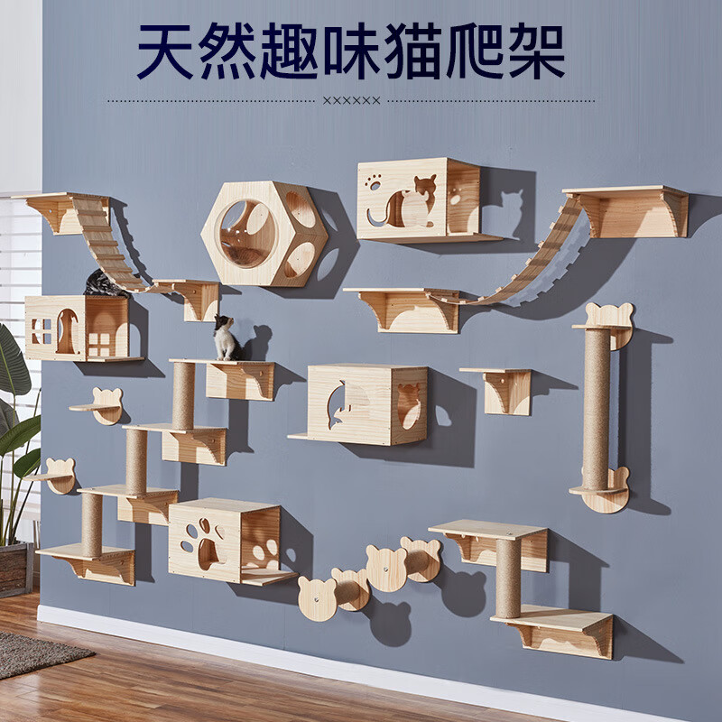 猫爬架猫墙实木猫抓柱壁挂式猫树太空舱跳台软梯吊桥猫窝剑麻猫咪玩具磨爪 配套上门安装