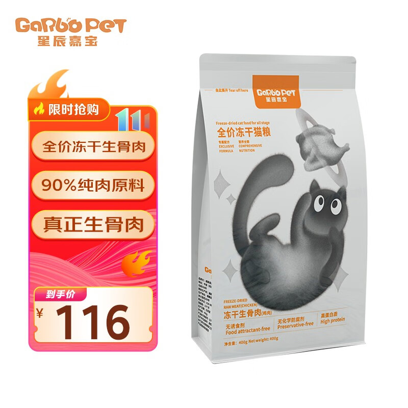 星辰嘉宝GARBOPET全价冻干生骨肉猫粮成猫幼猫主食猫粮400g