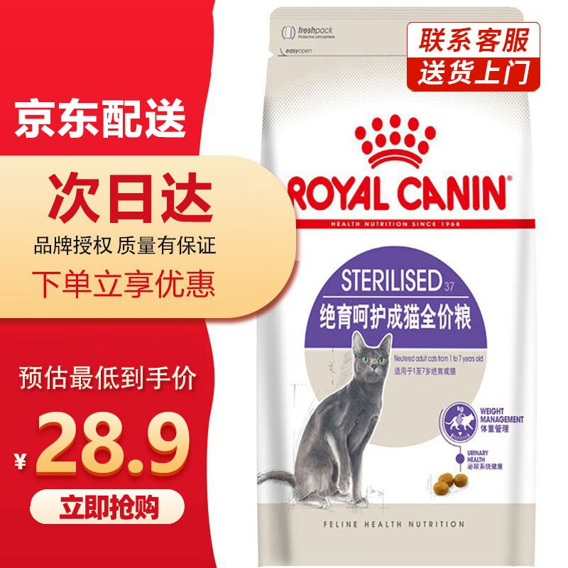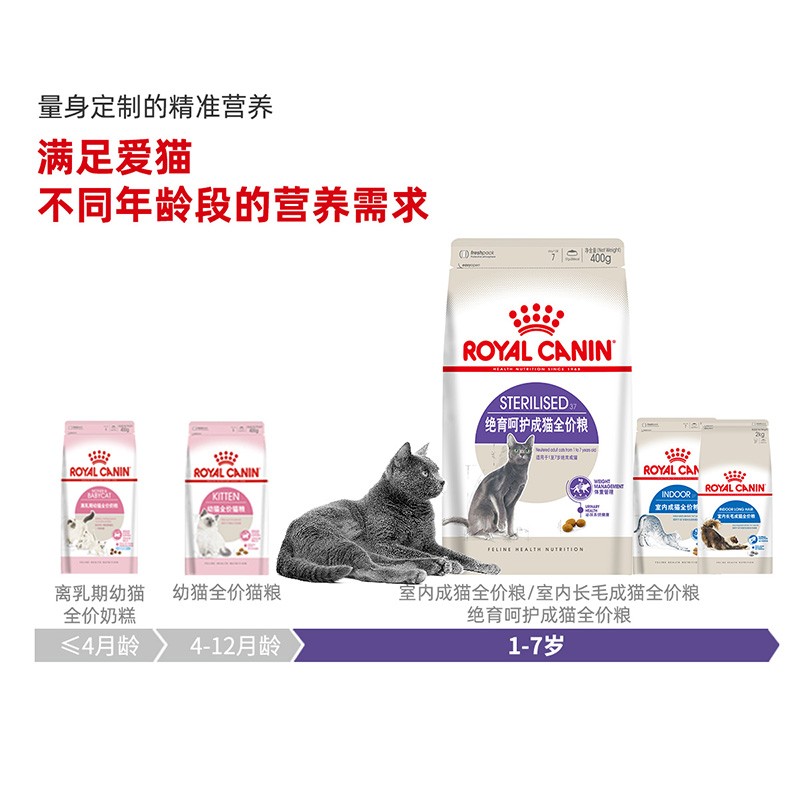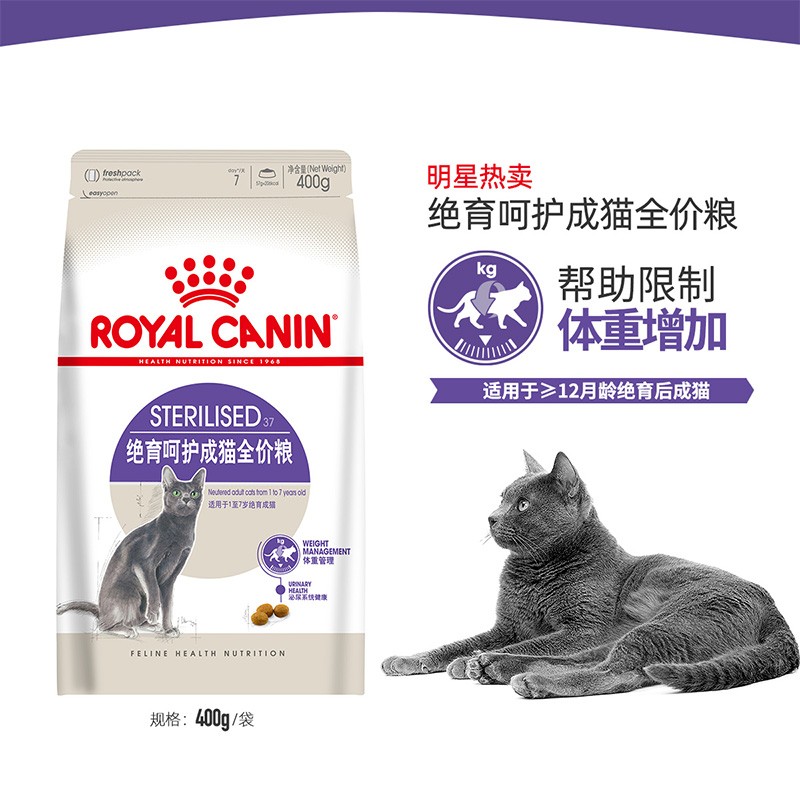 皇家(ROYAL CANIN)猫粮 全能优选呵护肠道绝育猫去毛球呵护泌尿道减肥挑食猫蓝猫英短美短布偶 SA37绝育呵护成猫全价粮【减肥猫粮】0.4kg