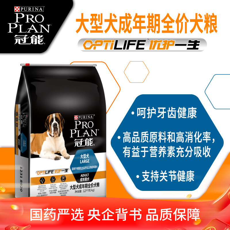 【效期6个月】冠能PRO PLAN 大型犬 成年期 全价犬粮 干粮 优护一生 12kg