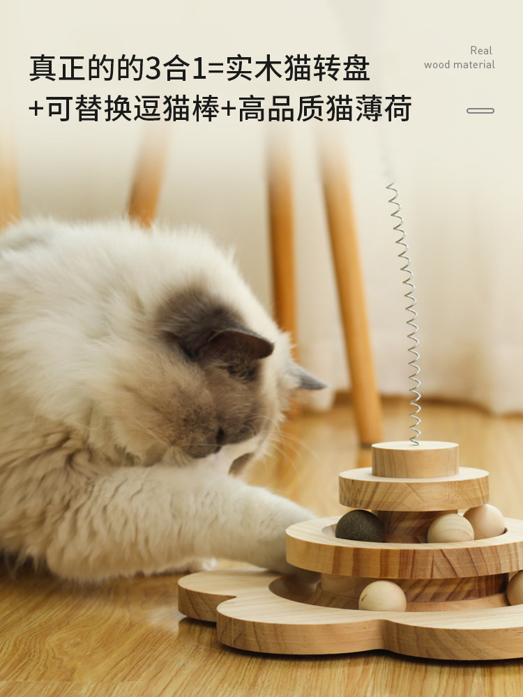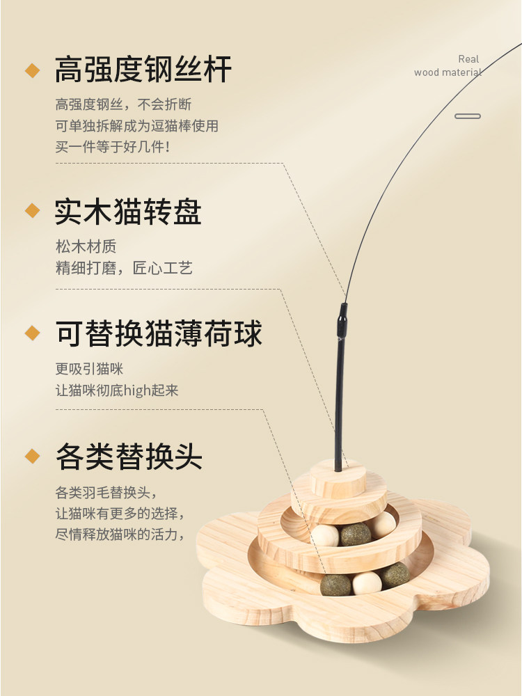 猫玩具实木猫转盘猫薄荷球自嗨解闷自动羽毛逗猫棒耐咬幼猫咪用品