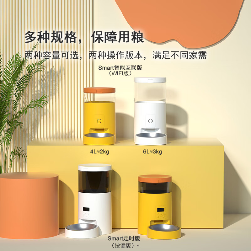 派可为宠物智能自动喂食器猫咪狗狗碗猫粮狗粮远程定时定量自助投食用品 Smart wifi版(不锈钢碗)可远程