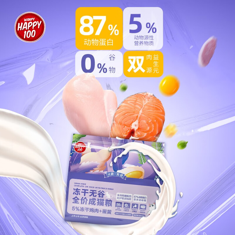 顽皮Happy100猫粮 U能系列无谷全价猫咪主粮 成猫幼猫宠物通用猫粮 全价成猫粮 1kg(冻干鸡肉蛋黄 )