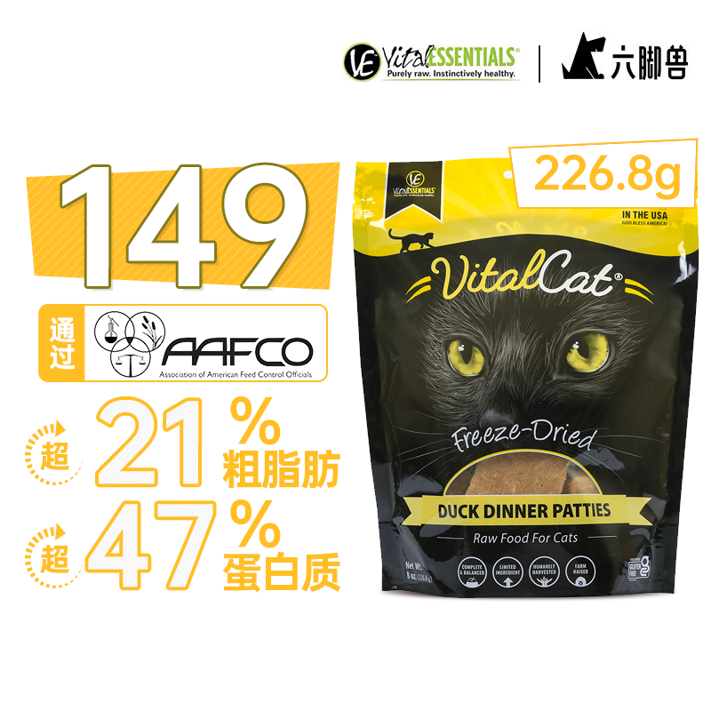 VITALESSENTIALS美国进口 VE冻干主食肉饼 维膳骨肉冻干猫粮 鸭肉配方 226.8g/8盎司