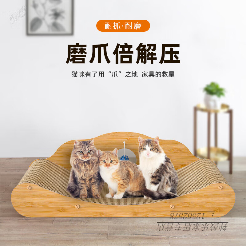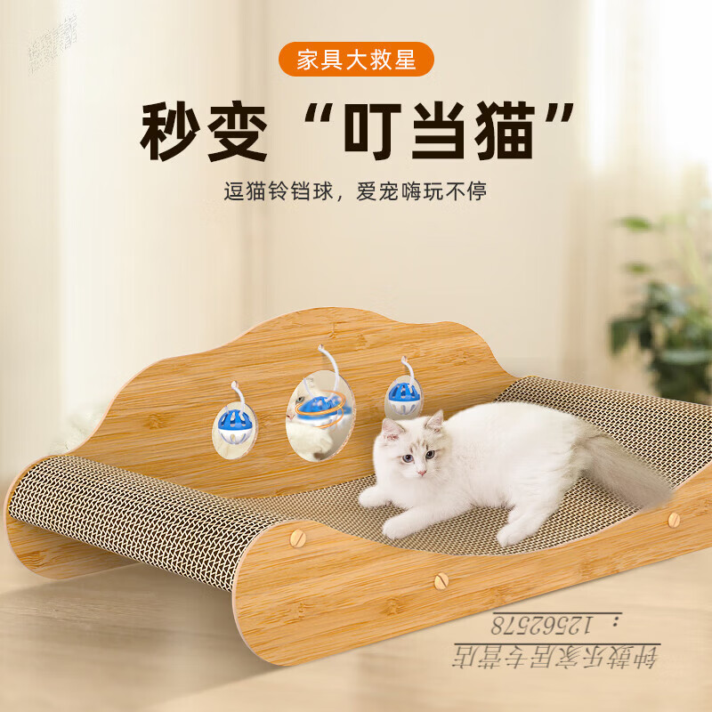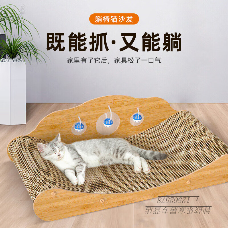 猫沙发猫抓板猫窝一体耐磨不掉屑贵妃榻猫爪板超大号磨爪器猫玩具 【加宽巨无霸】80CM铃铛款猫沙