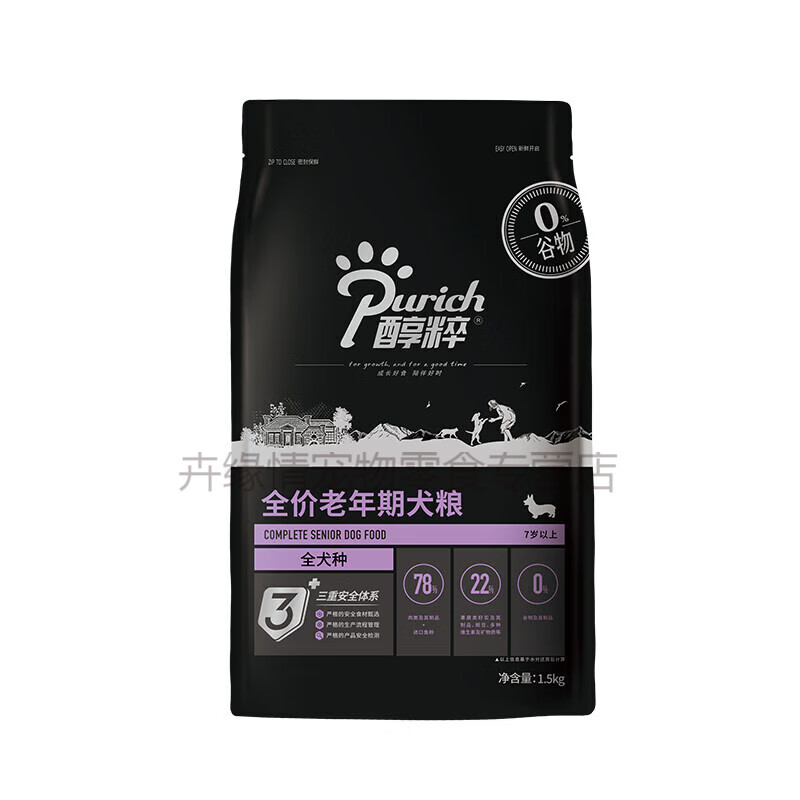 醇粹(Purich)黑标系列狗粮老年犬纯粹全价高龄无谷冻干犬粮 全价老年犬粮1.5kg*1 1.5kg /包