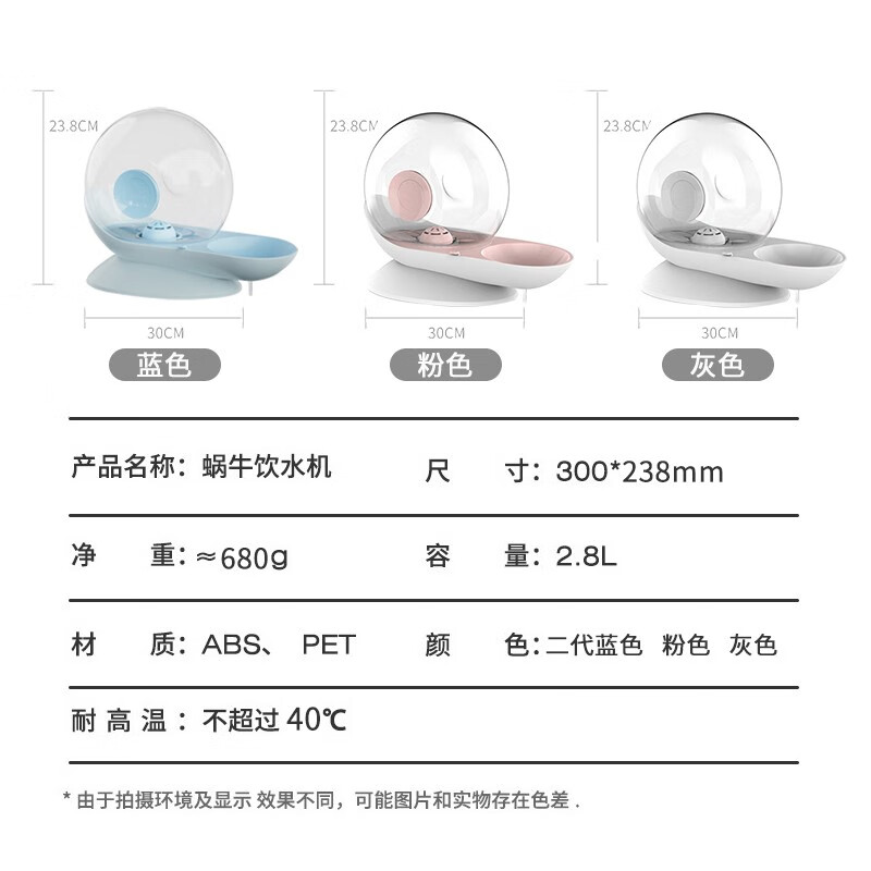 茨格曼 蜗牛款宠物猫咪饮水机自动过滤不插电猫咪狗狗喝水器 粉色