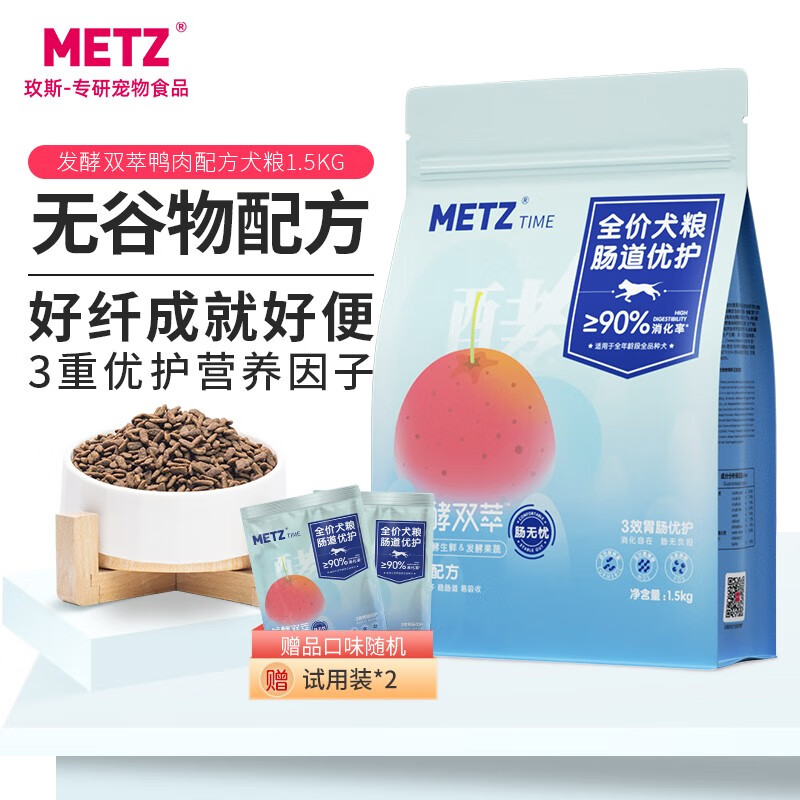 玫斯(metz)发酵双萃肠道优护全价通用狗粮小中大型犬粮成犬幼犬泰迪比熊 鸭肉味1.5kg