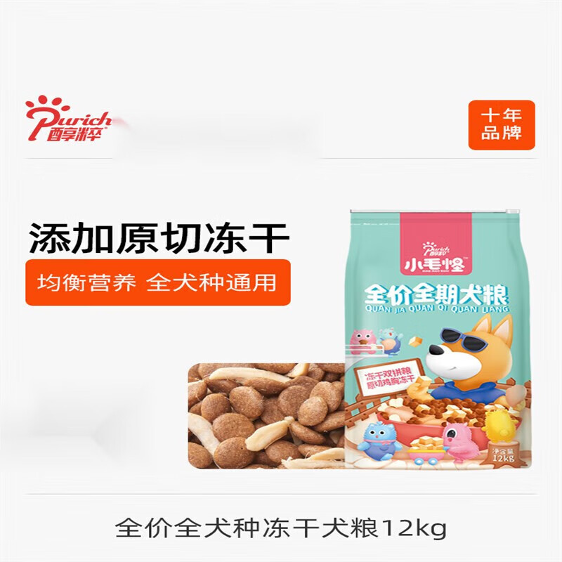 醇粹(Purich)狗粮中大型犬纯粹冻干粮通用型全价大包装12kg 通用犬粮-添加鸡肉冻干 12k.g/包