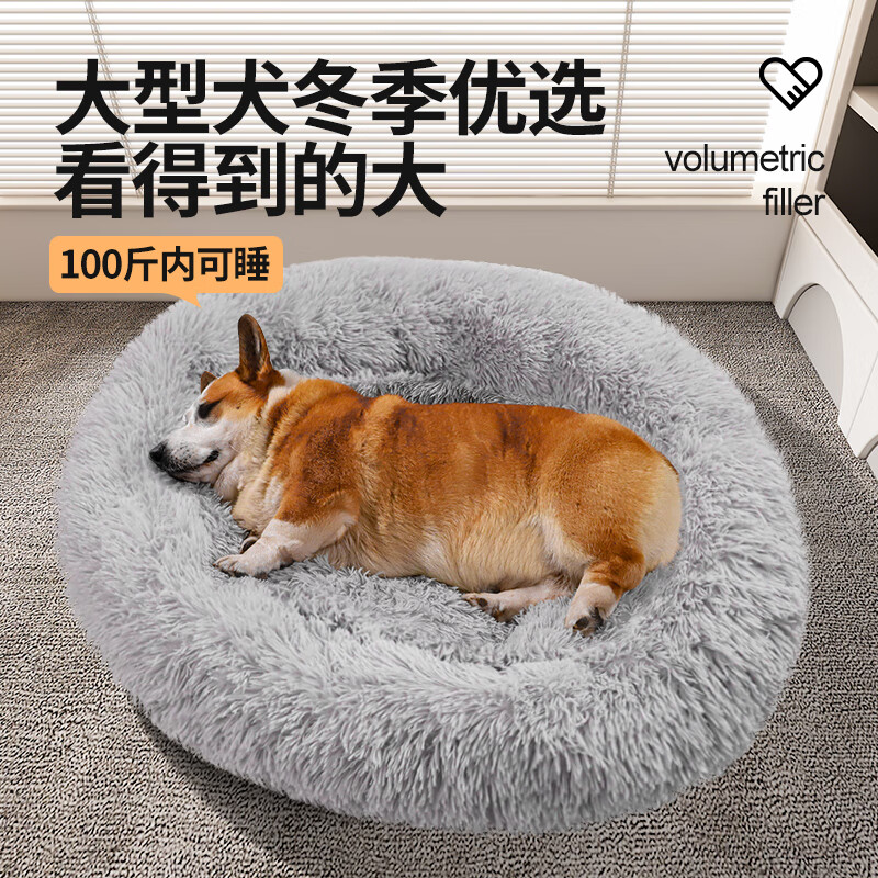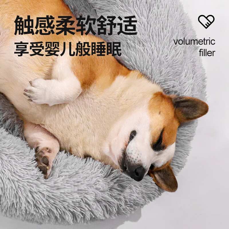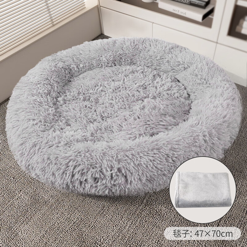 柒哦狗窝冬季保暖中小型犬狗狗床睡觉垫子加厚猫窝宠物用品 长毛绒棉窝-高级灰 小毯子 S(直径40cm 适合5斤内)