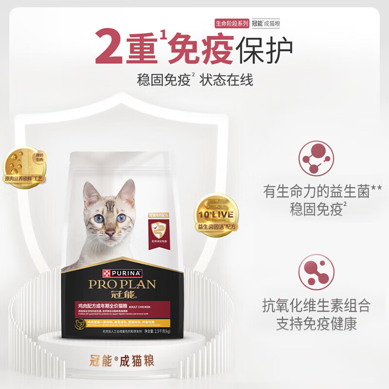 冠能猫粮鸡肉配方成年期全价猫粮宠物英短布偶波斯室内通用型营养主粮 鸡肉配方成猫粮2.5kg 成年期猫咪