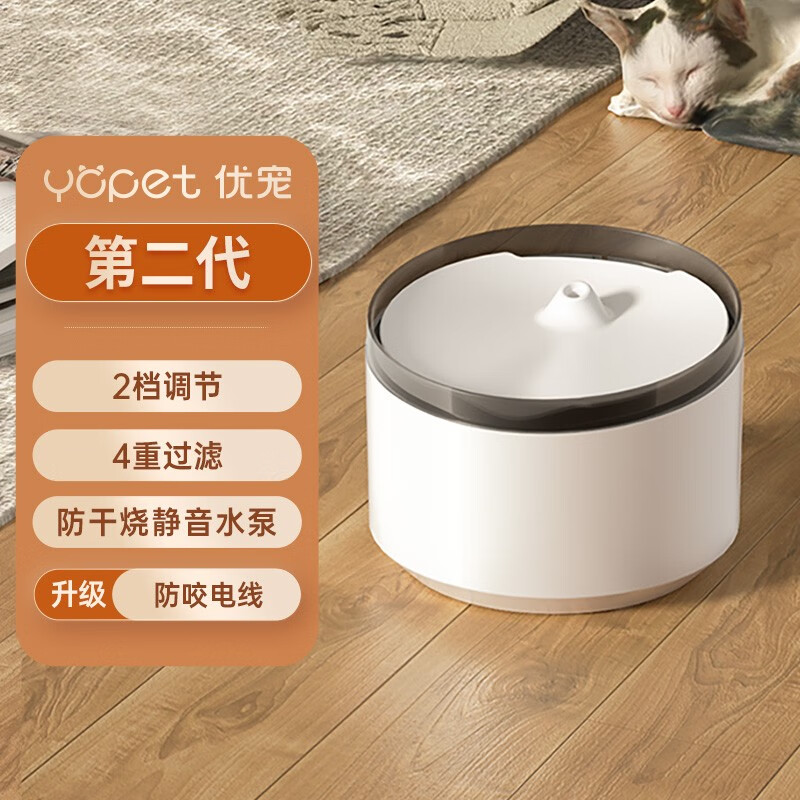 优宠(Yopet)宠物猫咪饮水机 无线感应自动循环流动活水过滤 狗狗宠物碗喂水器 第二代白色款 防咬线丨斜口喂养