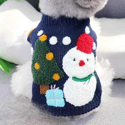 鹿凌青 小狗狗穿的衣服秋冬装宠物泰迪比熊博美贵宾小型犬雪纳瑞狗狗衣服针织毛衣 藏青色 雪人 XL(建议12-18斤)