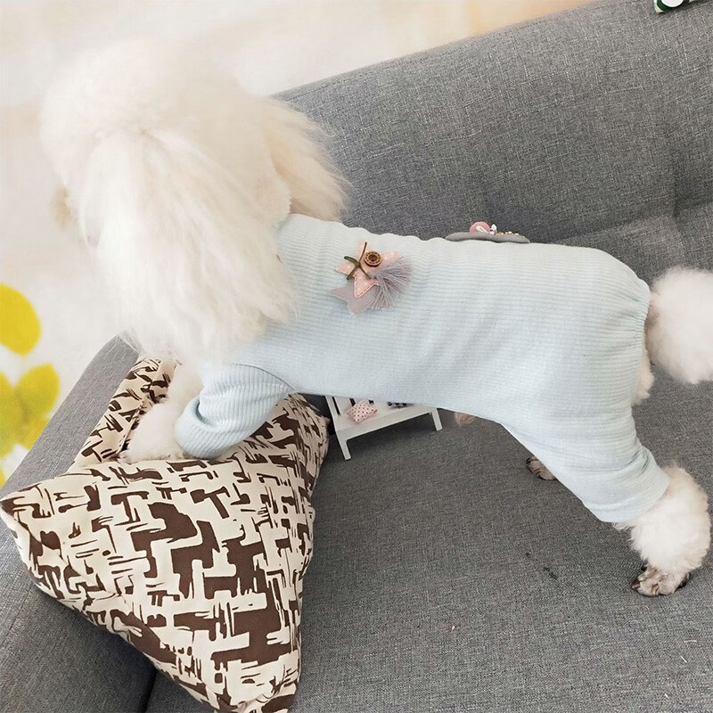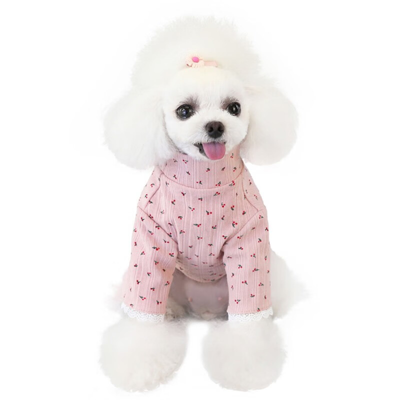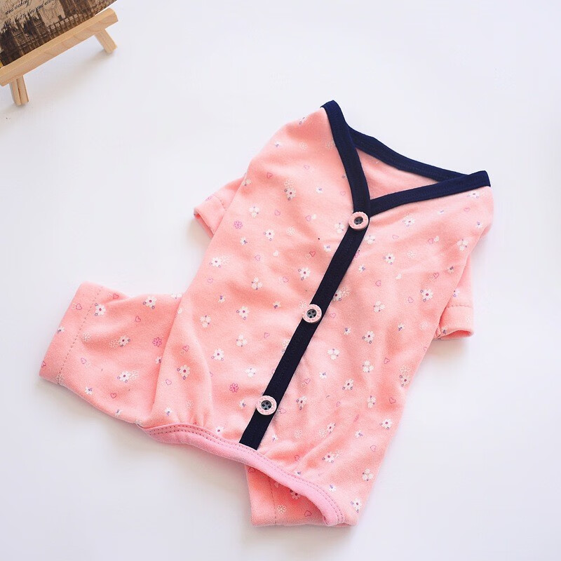 宠哆哆狗狗衣服泰迪小型犬比熊连体睡衣家居服宠物猫咪冬装四脚加厚卫衣 粉色睡衣【全棉】 XS 【建议2-3斤】