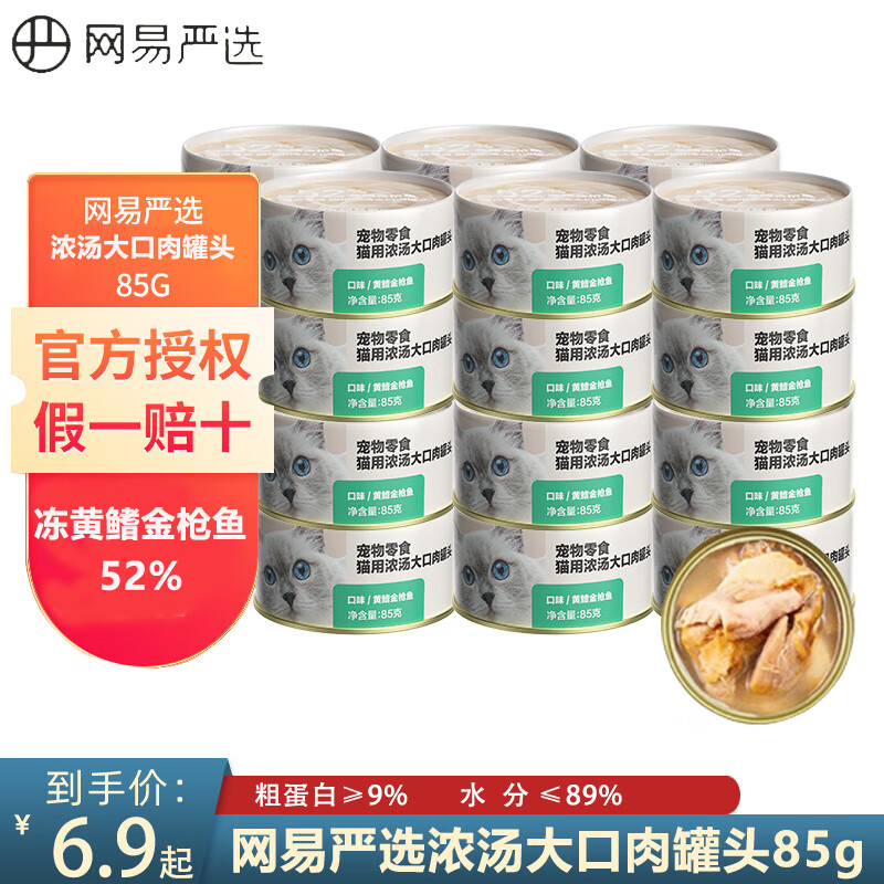 网易严选宠物猫罐头浓汤猫湿粮猫咪罐头大口肉红肉补水猫罐罐 【浓汤大口肉】黄鳍金枪鱼85g 6罐装