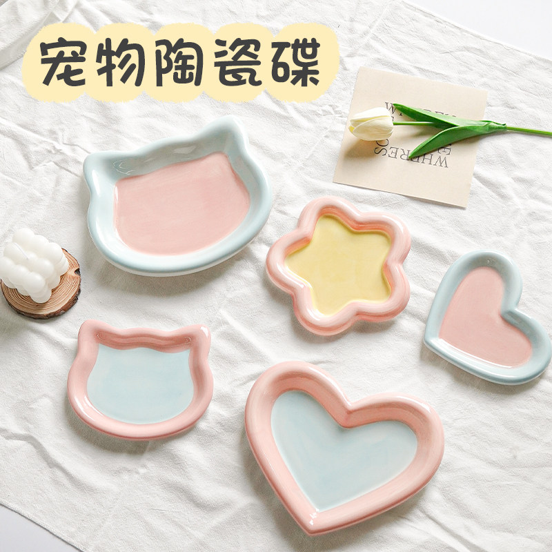 猫碗陶瓷猫盘子狗狗碗猫食盆吃饭碗猫咪专用猫粮罐头餐盘宠物用品